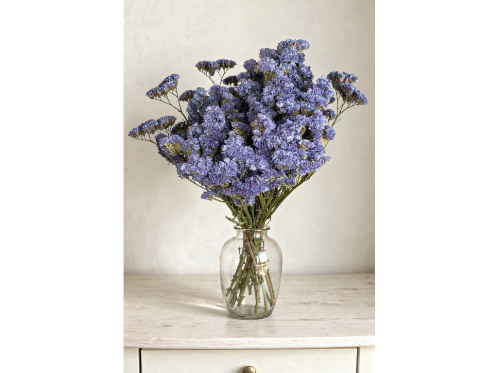 Limonium sinuata, známe aj ako „statice“ alebo „morská levanduľa“, sa pôvodne pestuje v Stredomorí a Ázii. Naša limonka pochádza z rodinnej farby, kde ju starostlivo a s láskou ručne zbierajú, sušia, viažu a balia. Vďaka tomu si kvety uchovajú svoj prirodzený vzhľad, prirodzený odtieň a flexibilitu po celé mesiace.