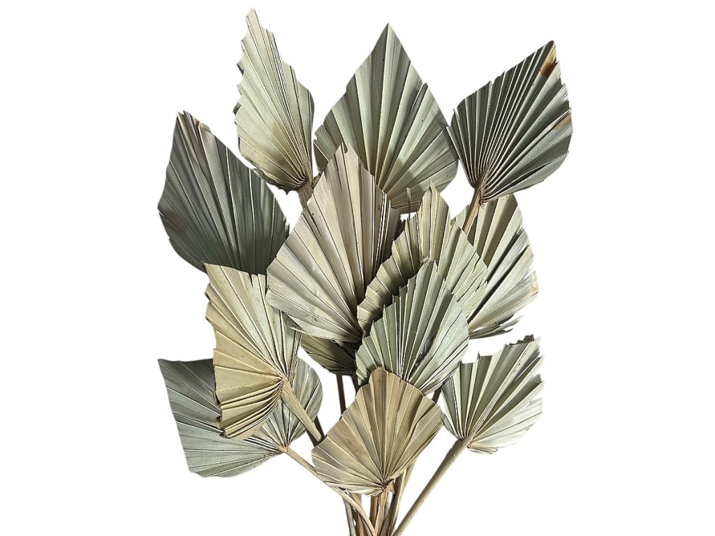 Palmové listy pochádzajú z čeľade Arecaceae. Po zbere sa prirodzene sušia, pričom si zachovávajú pevnú štruktúru, svetlý naturálny tón a výrazné žilkovanie. Následne sú ručne strihané, zarovnávané a tvarované do oštepového profilu, ktorý floristi oceňujú pre jeho ľahké umiestňovanie do aranžmánov. Prírodný variant nie je farbený – ide o pôvodnú farbu listu po usušení.