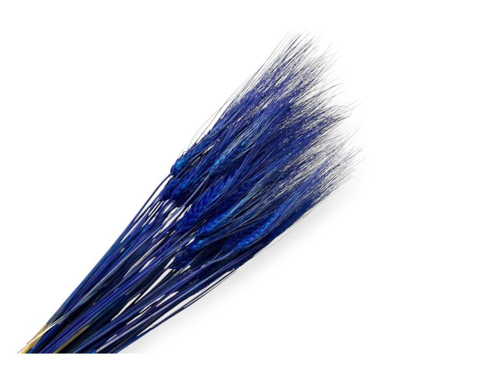 Raž je tradičná európska obilnina, kedysi pestovaná najmä v horských oblastiach. Okrem úžitkovej hodnoty sa v minulosti využívala aj ako symbol úrody a ochrany domova. Po šetrnom usušení boli klasy ručne farbené do sýto tmavomodrej (navy) farby, ktorá evokuje noc, pokoj a eleganciu. Každý zväzok je starostlivo viazaný a pripravený na kreatívne použitie.
