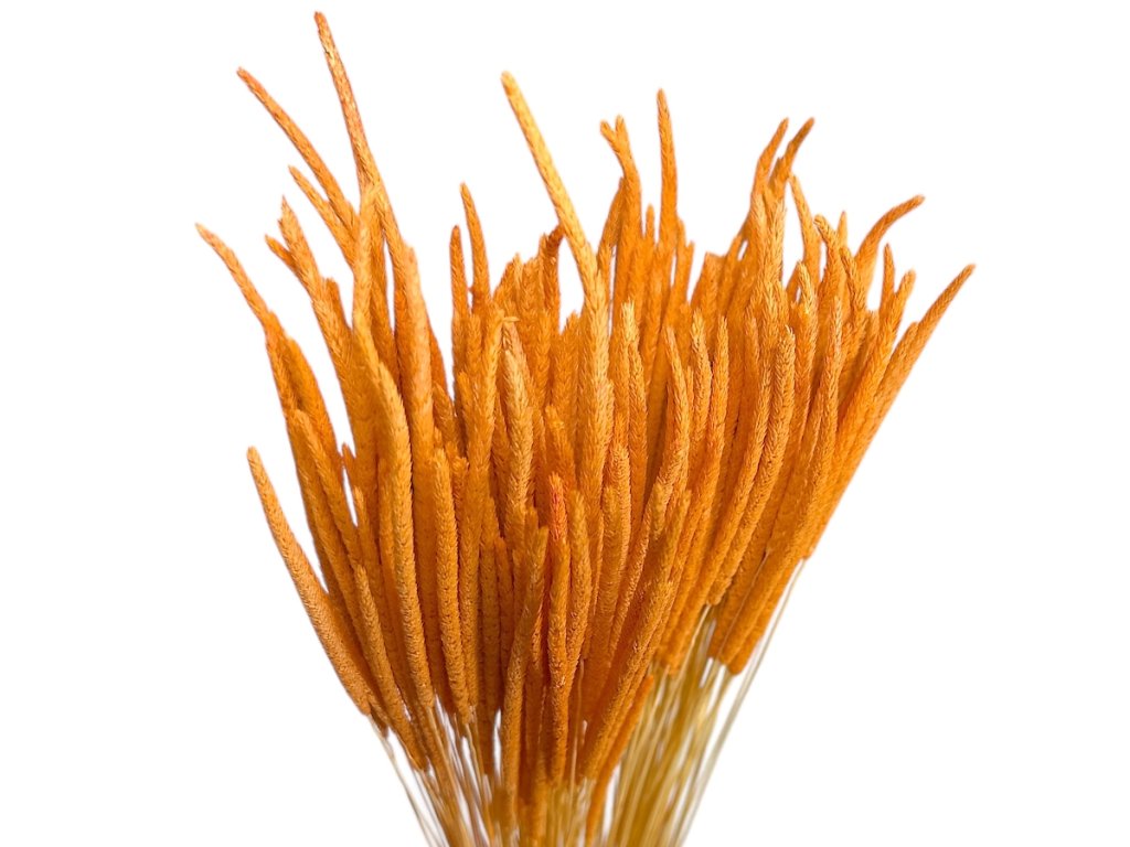 Timothy grass je pomenovaná podľa farmára Timothyho Hansona, ktorý ju v 18. storočí rozšíril v Severnej Amerike. Vo floristike je obľúbená najmä pre svoju nadčasovú eleganciu a univerzálnosť – dokáže pôsobiť jemne romanticky, ale aj moderne minimalisticky. Oranžová farba symbolizuje radosť, tvorivosť a vitalitu – spája energiu červenej so slnečným teplom žltej. V aranžmánoch pôsobí povzbudzujúco a vyvoláva pocit domova a pohody. Vďaka tejto symbolike je obľúbenou farbou jesenných dekorácií, ale aj veselých jarných kombinácií.