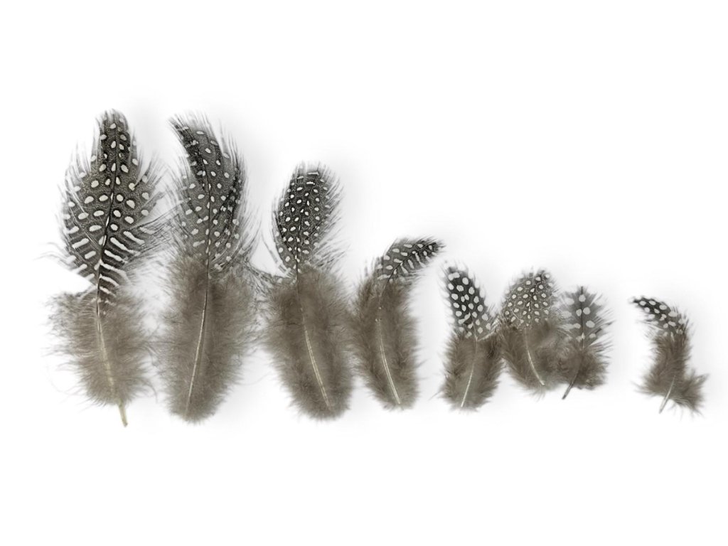 Pierka pochádzajú z perličky domácej - guinejskej (Numida meleagris) a sú starostlivo triedené podľa kvality a veľkosti. Zachovávajú si svoj prirodzený bodkovaný vzor a jemnú štruktúru. Ide o prírodný materiál bez umelého farbenia, určený výhradne na dekoratívne použitie v interiéri.