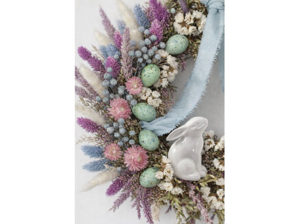 Kombinujte s aranžérskymi pierkami perličky, prepeličími vajíčkami, sušenou gypsomilkou, lagurusom a pastelovou sušinou pre jemný, moderný veľkonočný aranžmán v prírodnom štýle.